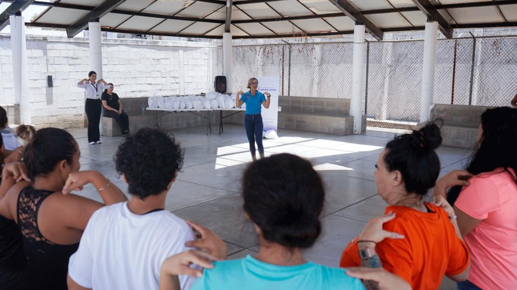 La directora de Fundación ARHE, Doris Camacho, fue quien se encargó de llevar el apoyo, pero no lo hizo sola, sino que estuvo acompañada de Perla García, de la Clínica Integral Health Life, y de Karely Sánchez, de Clínica Médica y Dental, para brindar a las internas información valiosa.