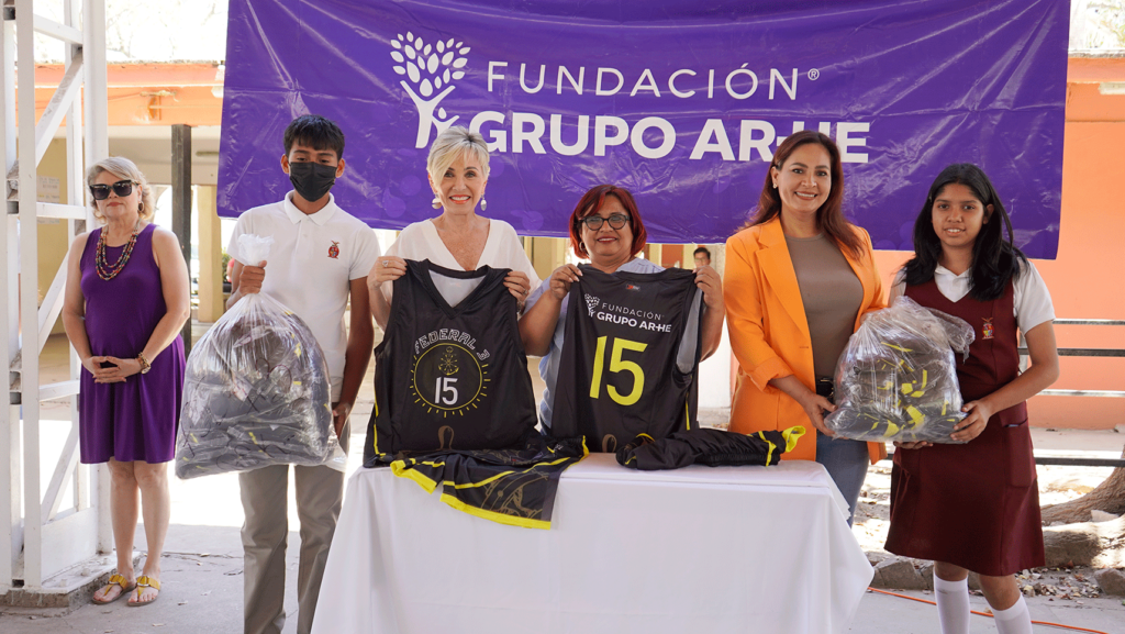 Con el objetivo claro de abonar en el crecimiento de la juventud mazatleca a través del deporte, Fundación Grupo ARHE hizo entrega de nuevos uniformes a los equipos de baloncesto varonil y femenil, de la Escuela Secundaria Genaro Estrado Federal #3, quienes participan en un certamen local.