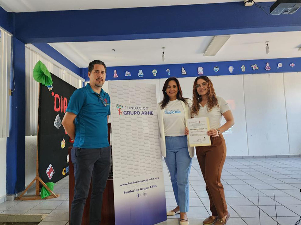 La directora de Fundación Grupo ARHE, Doris Camacho, dirigió unas palabras previas a los jóvenes estudiantes y otorgó un reconocimiento al director del plantel, Óscar Waldemar Herrera Vergara, por abrir las puertas de la escuela y ser parte de tan interesante charla que nutrió a los estudiantes del CETIS 127. Cabe mencionar que el Presidente de Consejo de Administración de Grupo ARHE fue alumno de esta institución.