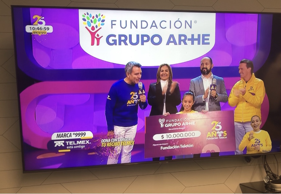 ¡VAN POR LA META! GRUPO ARHE Y FUNDACIÓN GRUPO ARHE SE SUMAN Y DONAN MÁS DE 10 MDP AL TELETÓN